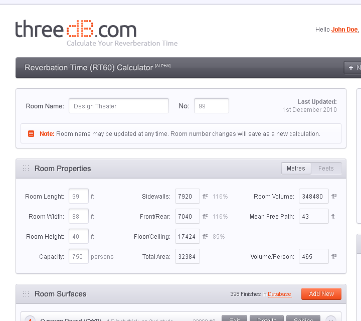 Reverberation Time Calculator Web Design