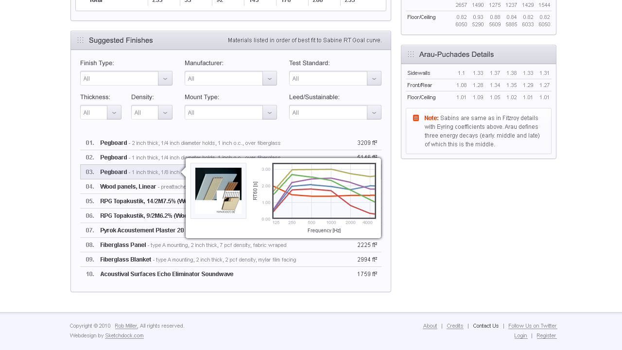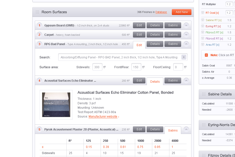 We designed an excellent UI for an online service that calculates reverberation time.
